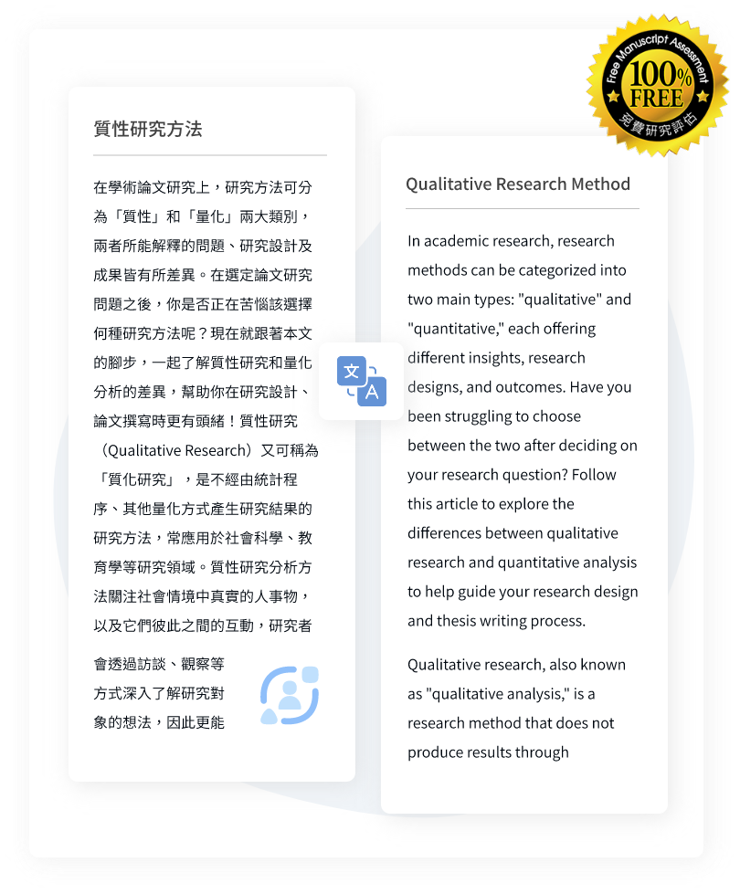 您的稿件將由至少兩位專家審閱,並透過AI輔助與三階段編修,確保符合期刊規範並達到最高品質,讓研究成果清晰傳達給期刊編輯。